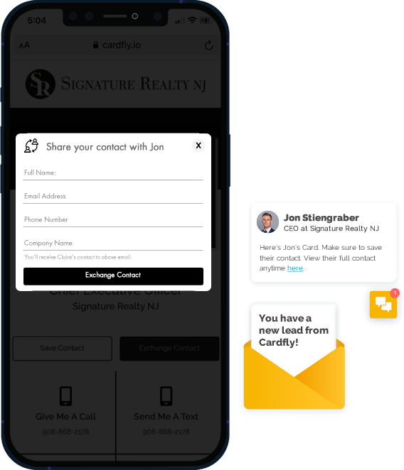 Easy, just tap or scan your Cardfly Phone Tag, Display, Band, or card on someone’s phone and a link will come up. They click the link and are brought to your digital business card. Your digital business card includes contact information as well as social media profiles and everything else you might want to include. They can either hit exchange contact or Save Contact and that's it!